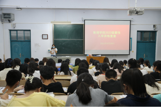 数理学院2022级全体新生在辅导员王艳菲老师的指导下,按照学校有关规定,于2022年9月29日晚7点进行了新生入学资格复查和入学考试。