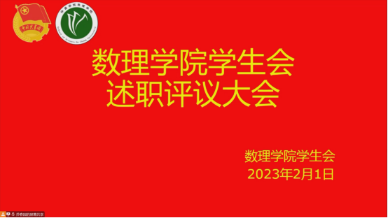为更好地总结数理学院2022年学生会的各项工作,促进学生会各项工作的开展。2023年2月1日下午15:00,数理学院学生会通过线上评议的方式举行了述职评议大会。许昌学院校学生会执行主席张震超、许昌学院校学生会团支部书记韩雯君以及数理学院学生会全体成员参加了此次大会。
