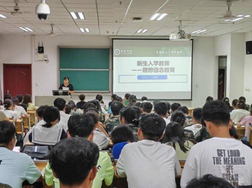 2023年9月11日晚19:00,数理学院在E-604开展新生入学教育第一课——理想信念教育。王萌亚老师担任主讲人。2023级全体新生参加此次入学教育。