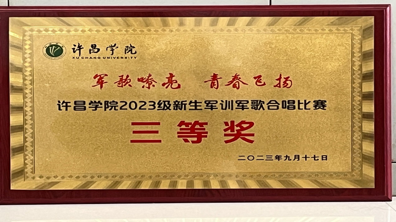 接着,为军训获得奖励的集体和个人颁奖。数理学院获“军歌嘹亮 青春飞扬”军训合唱比赛三等奖。