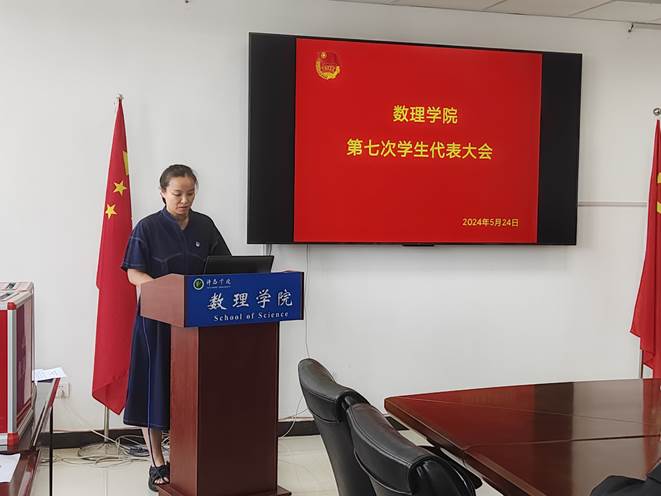 2024年5月24日13:00数理学院第七次学生代表大会正式召开。首先,由徐星宇主持并宣布第七次学生代表大会开幕,全体参会成员共唱《义勇军进行曲》。接着,燕思懿同学代表校学生会对我院学生会近一年的工作进行总结并予以肯定。张泰森同学代表数理学院学生会作过去一年的工作报告,他表示近一年的学生会活动项目一方面紧紧围绕学校的中心工作,另一方面从活动项目的征集、筛选、执行到评选始终立足于学生,充分调动了学生参与的积极性。