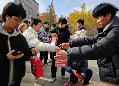 12月 6 日中午十二点半,逸夫图书馆门口热闹非凡,数理学院为 2021 级考研同学精心准备的“上岸礼包”发放活动在此举行。