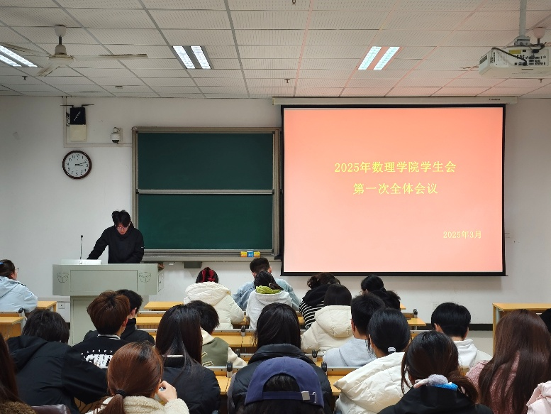 2025年3月14日下午15时,数理学院学生会在E-306教室召开本年度第一次全体会议。会议由执行主席李庆斌主持,学院团委副书记仝婧、学生会主席团成员、各部门负责人及全体学生工作者共同参与。