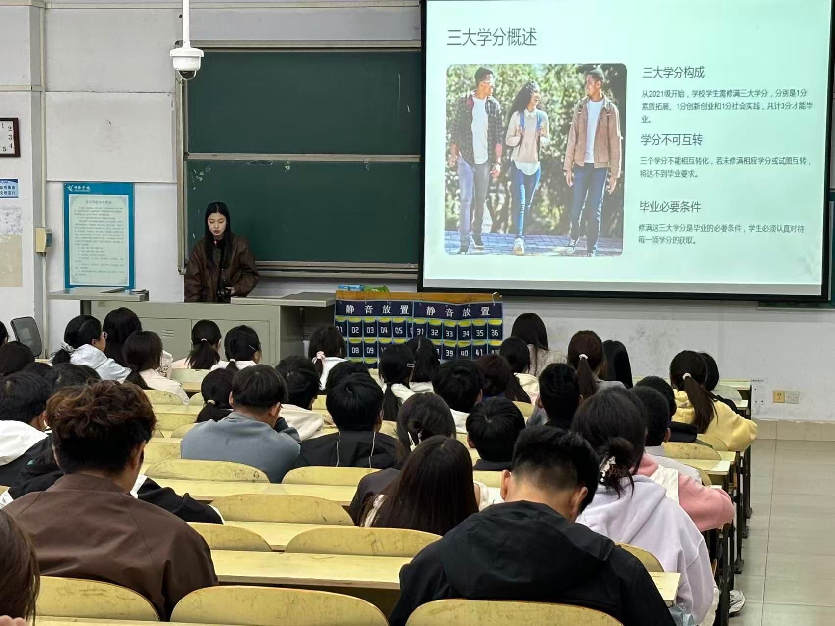 程晓雨重点介绍了志愿服务和劳动教育模块,说明了志愿服务时长与学分认定的具体规则。"在志愿服务中,我们既运用了专业知识,也收获了成长。"她还介绍了劳动教育的多种参与方式,包括文明宿舍创建、校园环境维护等,让学生在积累学分的同时,也培养了吃苦耐劳的品质与尊重劳动的意识。
