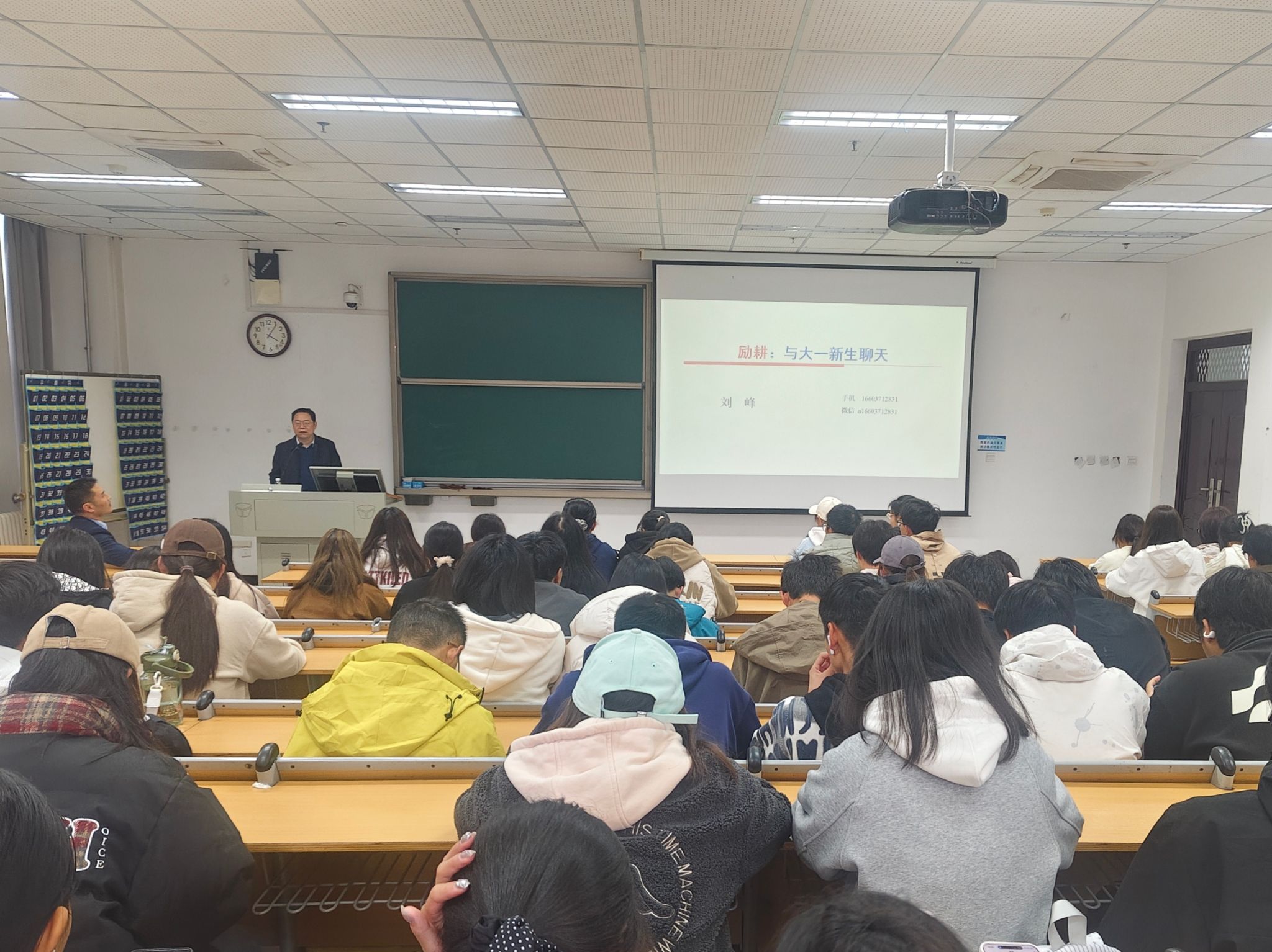 2025年10月25日下午,数理学院特邀优秀校友、河南省委组织部一处处长刘峰在E-318作成长成才励志主题讲座。2025级全体学生参加此次讲座。本次讲座由党委书记苗宝军主持。