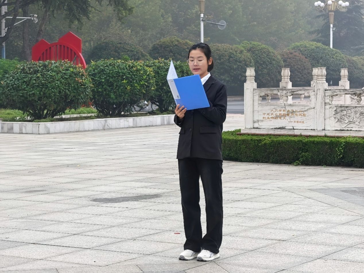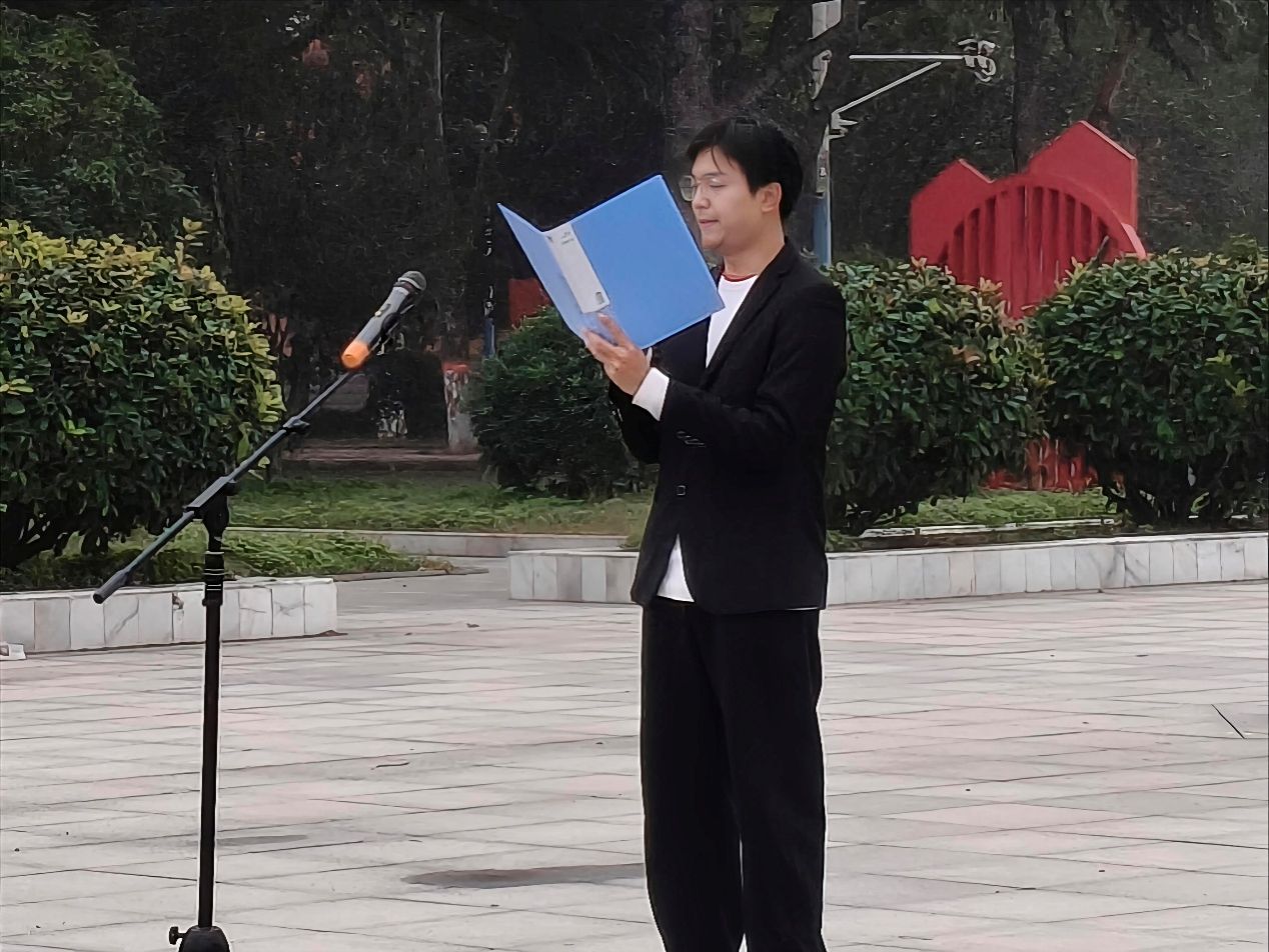 升旗仪式结束后,数理学院举行“国旗下的誓言”主题教育活动。2025级新生代表魏朝阳进行国旗下的演讲。他以青春之名,畅谈对大学生活的憧憬与规划,号召同学们以奋斗为笔,书写无愧于时代的青春华章。