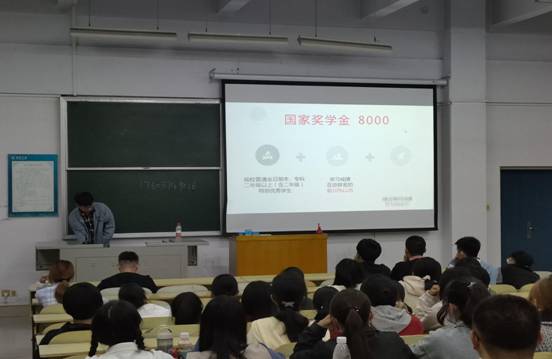 首先由吴剑蒙为新生讲解了国家励志奖学金,国家奖学金,助学金三者的评定方式。并告知新生只有大二才有国家励志奖学金,并且每个专业名额有限,综合成绩优异者先得。