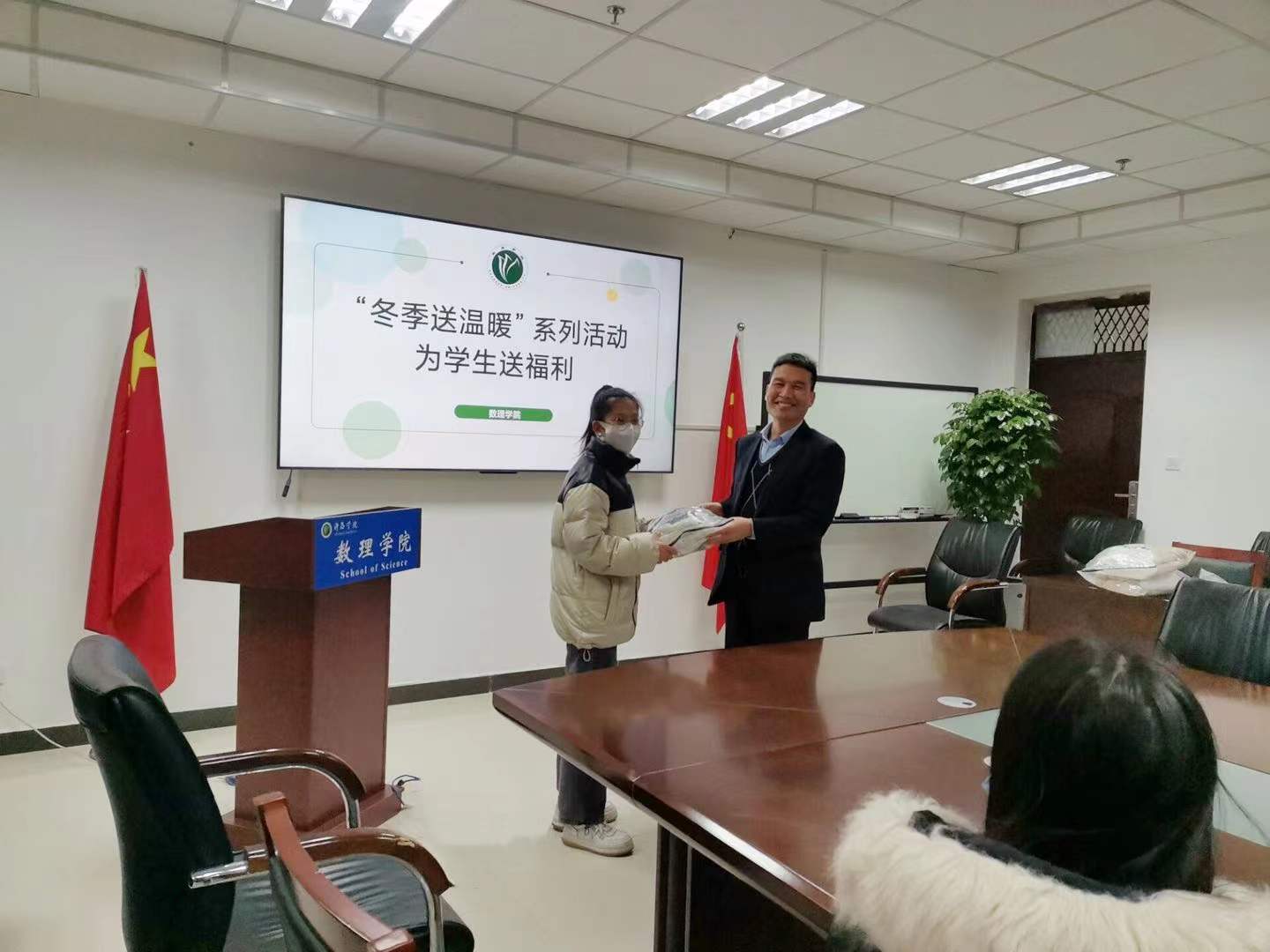 北风切切吹衣冷,温情阵阵暖人心,2021年12月1日下午,数理学院在文综楼2029开展“冬季送温暖”活动。院党委副书记苗宝军、资助专干仝婧以及各年级学生代表参加了此次活动。