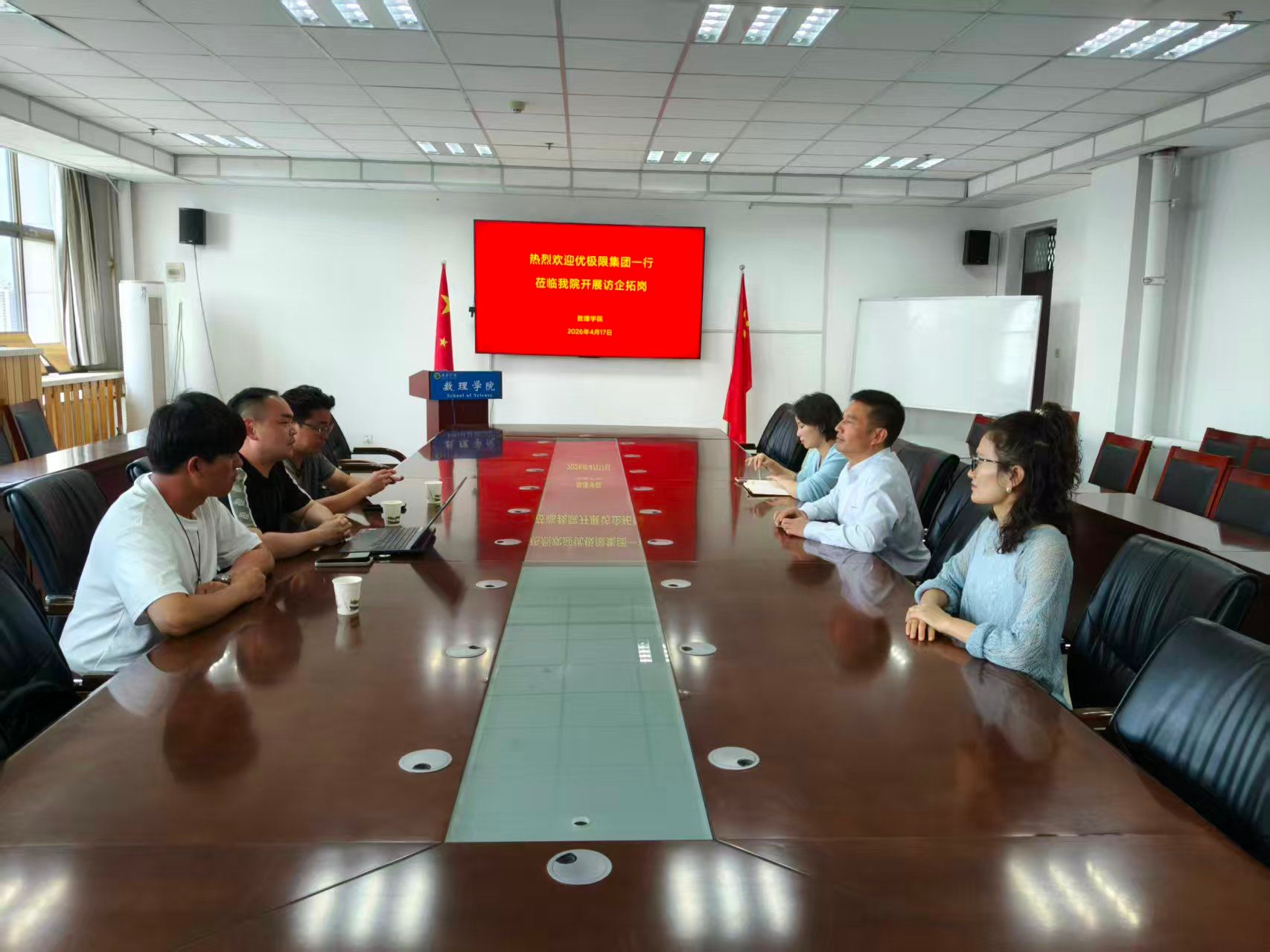 会上,苗宝军书记对优极限集团一行的到来表示热烈欢迎,并简要介绍了数理学院的专业设置、人才培养特色与毕业生就业情况。孔琪副书记围绕学院毕业生的专业优势、多元就业方向等内容与企业代表进行沟通,着重阐释了学院在深化校企协同育人机制、搭建精准就业对接平台等方面的探索与实践,同时传递了学院期待与企业携手共进,为学生提供更广阔发展空间、助力学生实现高质量就业的意愿。
