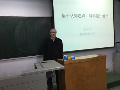 2017年11月15日下午,在B2-301教室,首都师范大学初等教育学院硕士生导师曾小平老师为我校“国培计划(2017)”置换脱产研修项目(初中数学)的学员们做了主题为《基于认知起点,科学设计教学》的报告。