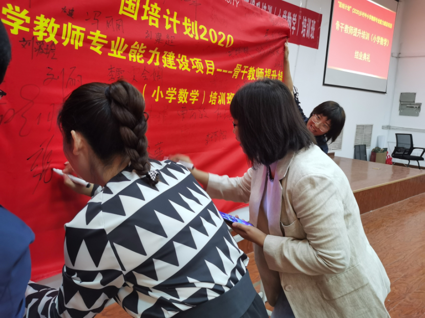 2020年9月30日上午,在A合七教室,数理学院举行了“国培计划(2020)”骨干教师培训项目小学数学学科培训班结业典礼,各个小组的学习导师和全体学员参加了毕业典礼。