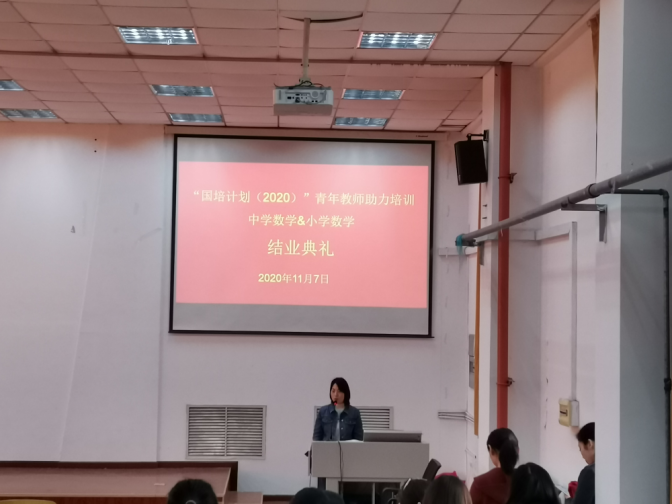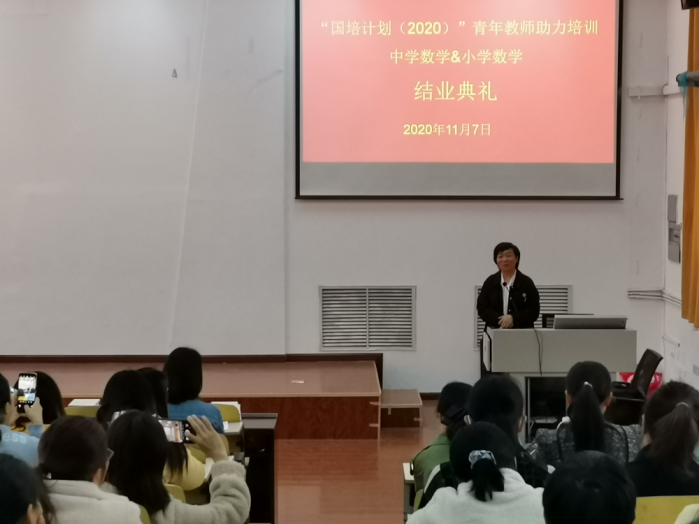 2020年11月7日上午,在A合七教室,许昌学院数理学院举行了“国培计划(2020)”青年教师助力项目培训班结业典礼,各个小组的学习导师和全体学员参加了毕业典礼。