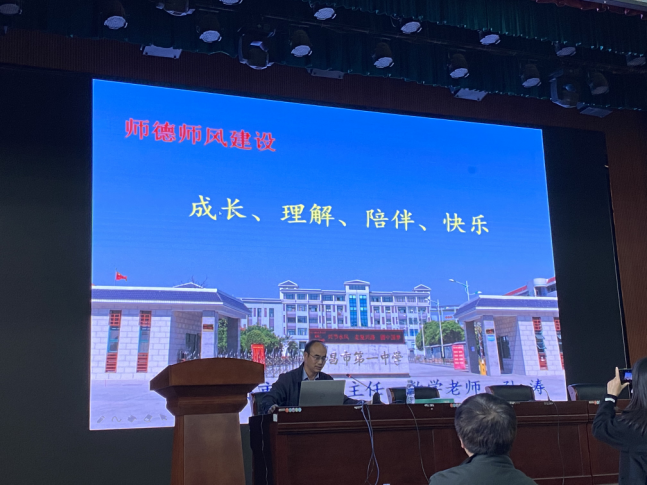 首先,许昌市一中的孙涛老师从师德方面作了精彩汇报。孙老师从学高为师,身正为范,热爱学生,敬业奉献等方面,结合自身的体会谈了谈对师德的要求。最后呼吁大家做一个“有理想信念,有道德情操,有扎实学识,有仁爱之心”的四有好老师!