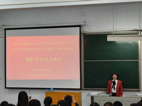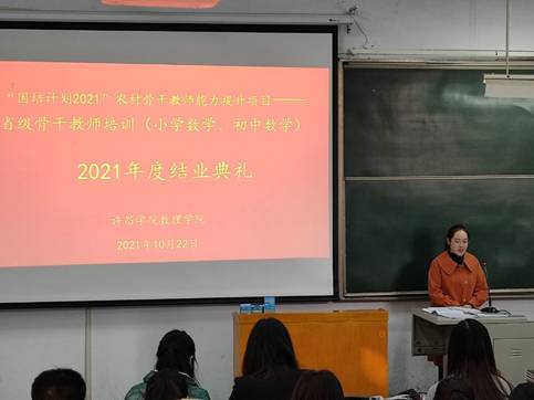 喜看稻菽千重浪,遍地英雄下夕烟。“国培计划(2021)”—农村骨干教师能力提升—省级骨干教师培训班历经15天的学习培训,于10月22日在许昌学院A合十六教师举行了隆重的结业典礼。