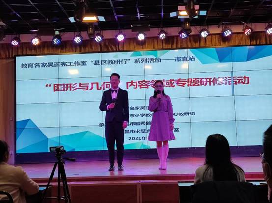此次活动分三项议程进行:一、四位教师进行图形与几何内容领域专题教材梳理;二、研修沙龙;三、图形与几何优秀课例展示。