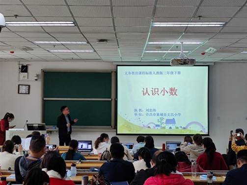 2021年11月4日上午,在许昌学院综合楼118教室,由许昌襄城县文昌小学刘忠伟工作室的主要成员为“国培计划(2021)”——市级骨干教师培训(小学数学)班的全体学员,带来了一场关于《数的认识》的专题研修活动。