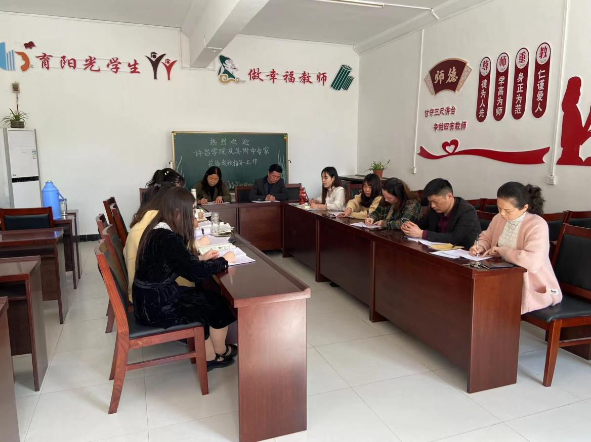大地复苏,春暖花开的时节,2022年3月11日,许昌学院数理学院党委书记牛裕琪、许昌学院附属中学陈敏副校长带领教师组成员等一行人来到潢川付店镇中学,进行许昌学院国培计划(2021)“一对一”精准帮扶学校培训项目的送教活动。这次送教主要是围绕教学教研示范以及学校和教师发展进行。