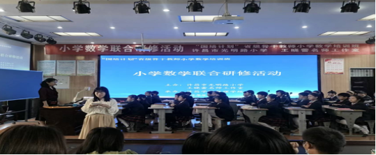 2022年9月23日上午,“国培计划(2021)”——省级骨干教师小学数学培训班全体学员走进许昌市光明路小学会同该校王晓蕾名师工作室全体成员共同开展教研活动。