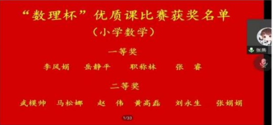 张燕老师和岳晓鹏老师宣读了“数理杯”优质课比赛获奖名单、培训优秀学员名单以及优秀宣传奖。