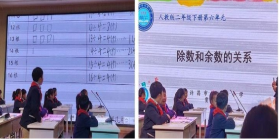 首先是许州路小学贾苗苗老师带来的一节优秀课例——《有余数的除法》,这节课通过动手操作、同桌合作、小组交流,利用摆小棒做到“用图想事,借图促思,据图说理”,进而学习知识,发展能力,学会用“余数比除数小”的知识解决生活中的问题。这节课使学生深切感受到数学与生活的密切联系,从而了提高学生学习的兴趣,并在获取知识的过程中积累经验,发展抽家思维。