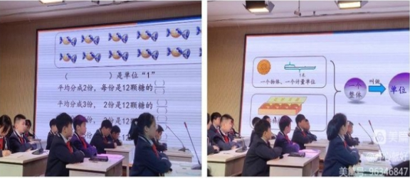 随后裴向阳老师给大家展示了《分数的意义》这节课,通过学生自主学习、小组交流、汇报展示、质疑互动等一系列活动,使学生思考、经历知识形成的过程,并通过观察感受分数可以表示部分与整体之间的关系,用贴近学生生活又有一定挑战性的实际问题,调动学生学习的积极性,进而培养学生解决实际问题的能力。利用这种学生熟悉的生活素材演绎的问题情境,能使他们真正体验到数学不是枯燥、空洞的,不是高深莫测的,数学就在自己身边,是实实在在的。