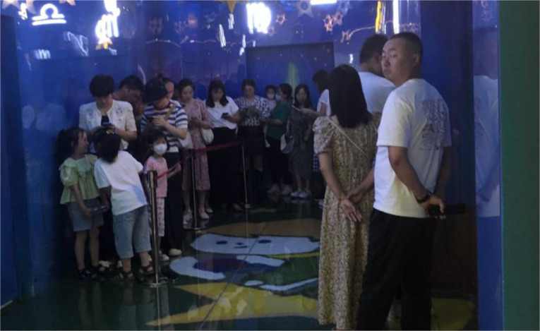 在一楼的科技启蒙区,老师们进入 4D 影院进行观影,带上科技眼镜,搭配上会摇动喷气的座椅等 4D 设备,整个观影过程如身临其境,真实感十足。在二楼的探索与创造区,看镜子迷宫和三角小屋,镜子迷宫利用光线的反射和折射原理,营造出迷宫般的感觉。近距离体验了声与光、电与磁、力与机械的奥秘。在三楼的宇宙与生命展区,展示了浩瀚宇宙的奥妙、生命的神奇、地球气象的变化、生命螺旋等科技知识。