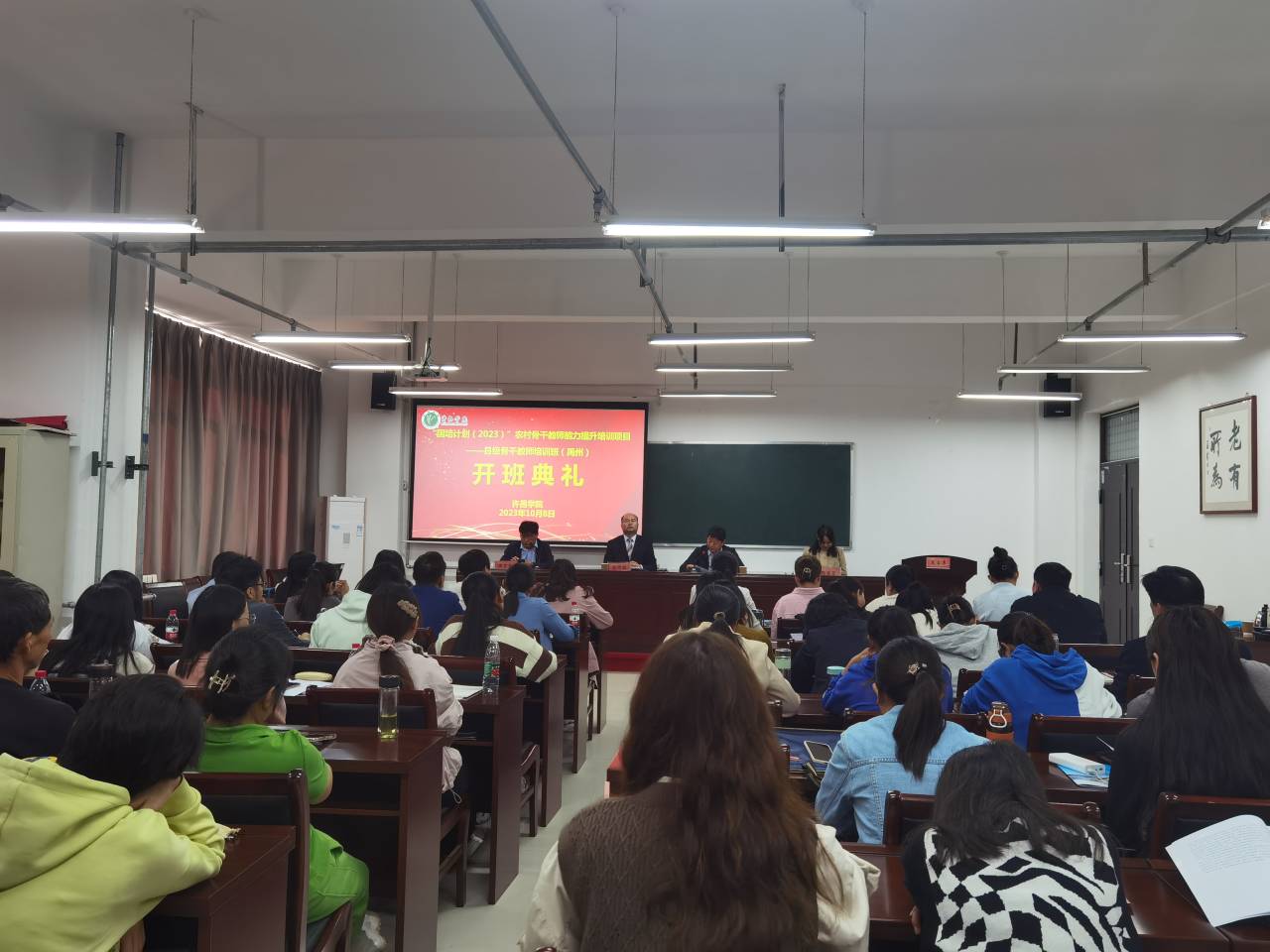 许昌学院继续教育学院院长高均昭出席开班典礼并讲话。禹州市教体局副局长冀松涛等、项目负责人、项目导师以及来自禹州的学员参加了典礼。开班典礼由数理学院副院长周宏宪主持。