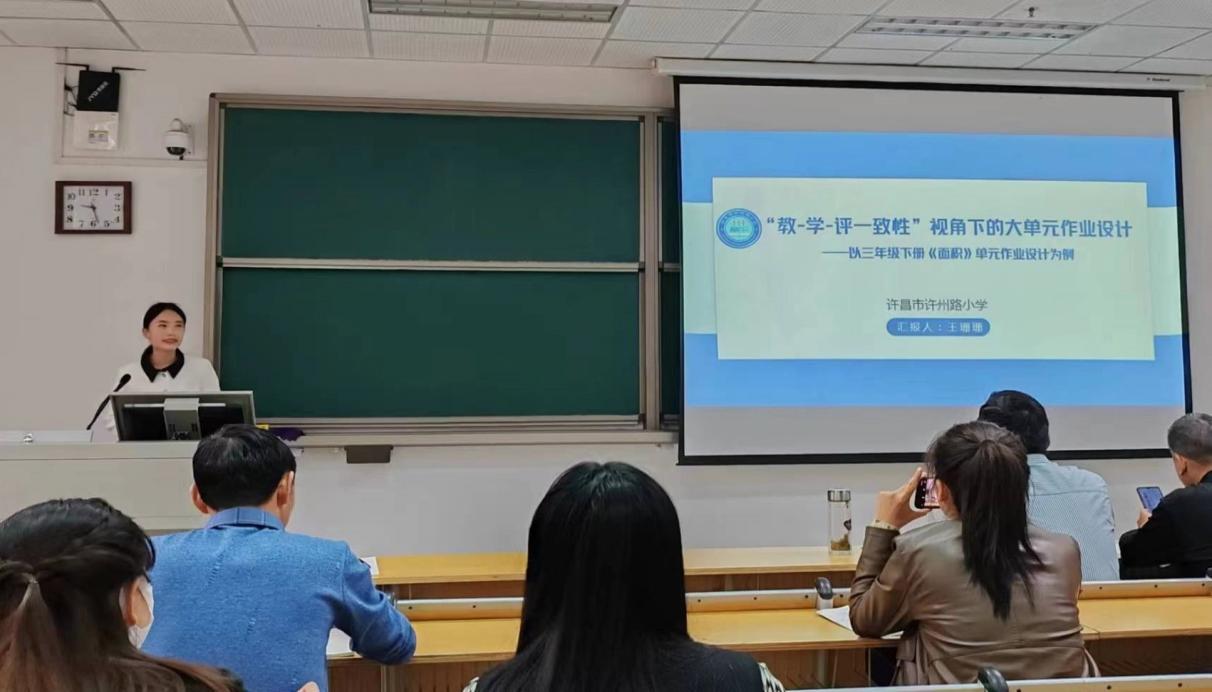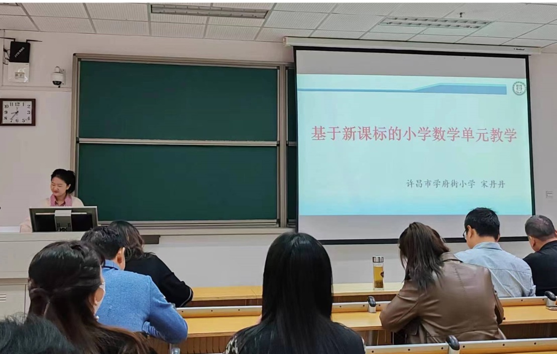 为了切实提升市级骨干教师教研科研和学科引领能力,引领区域校本研修和教师专业发展。2023年10月9日上午,“国培计划(2023)”农村骨干教师能力提升培训—市级骨干教师培训小学数学班全体学员,在许昌学院E楼118教室,参与了许昌市东城区实验学校副校长兼小学数学教研员李会平老师及其团队指导的小学数学作业设计案例分享的区域教研活动。