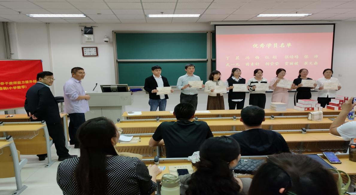 随后表彰了本次培训期间的优秀学员,表彰、颁发了优秀宣传小组,公布了数理杯教学创新大赛获奖名单,并举行了隆重的颁奖仪式,以此来鼓励参训学员,祝愿她们在未来的教学工作中取得更优异的成绩。
