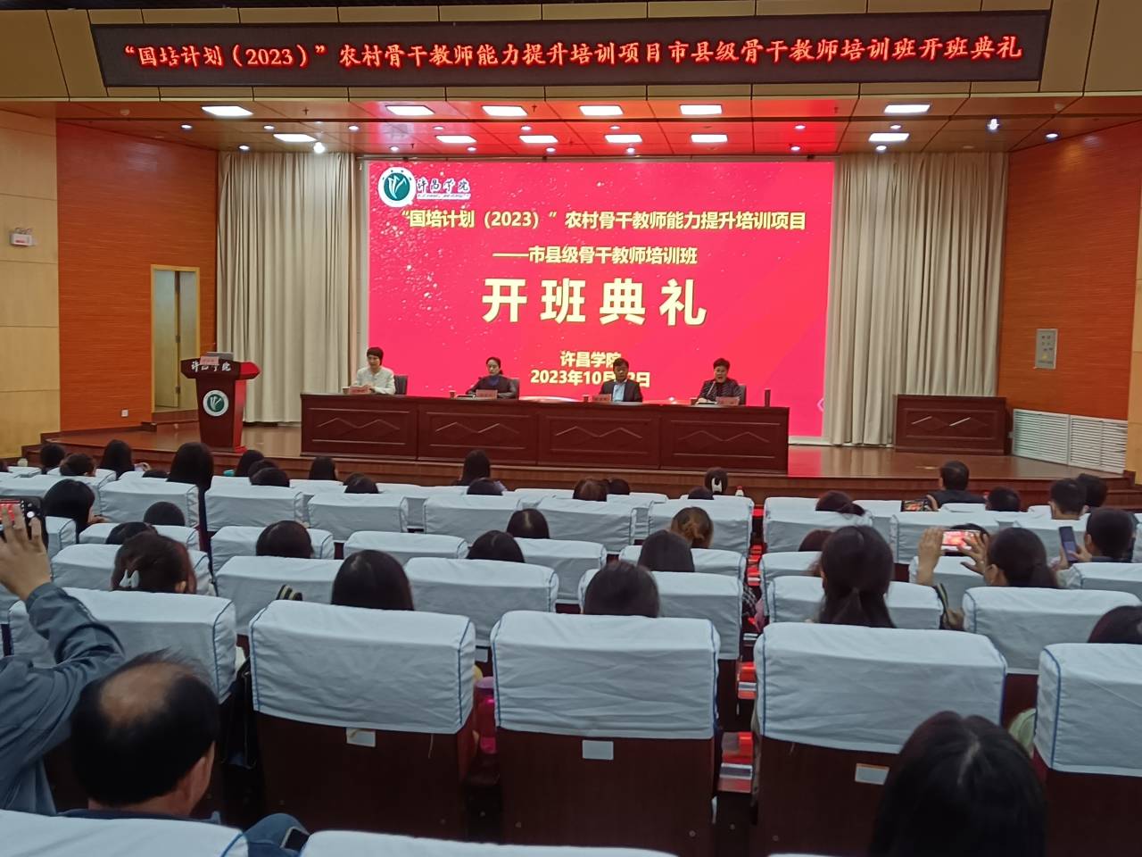 为了提升参训教师的课堂教学能力,助力打造县级学科教学骨干团队。2023年10月22日上午,许昌学院“国培计划(2023)”农村骨干教师能力提升培训—县级骨干教师培训在许昌学院学术报告厅举行了隆重的开班典礼。