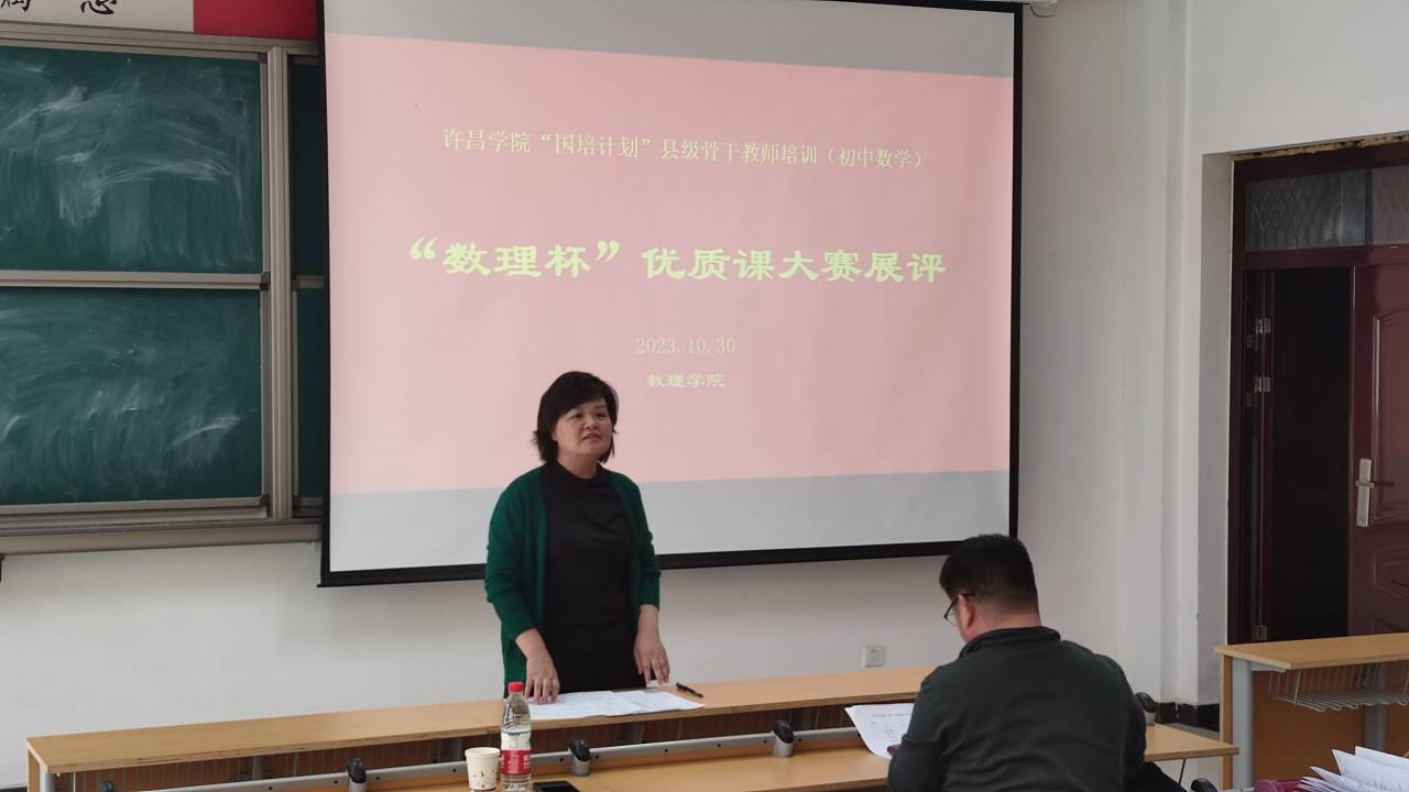 为促进教师专业化发展,切实提高教育教学质量,2023年10月30日上午,“国培计划(2023)”农村骨干教师能力提升培训—县级骨干教师培训初中数学班全体学员,在许昌学院数理学院项目组的精心组织下,齐聚许昌学院E楼106教室,举行了“数理杯”优质课大赛展评。