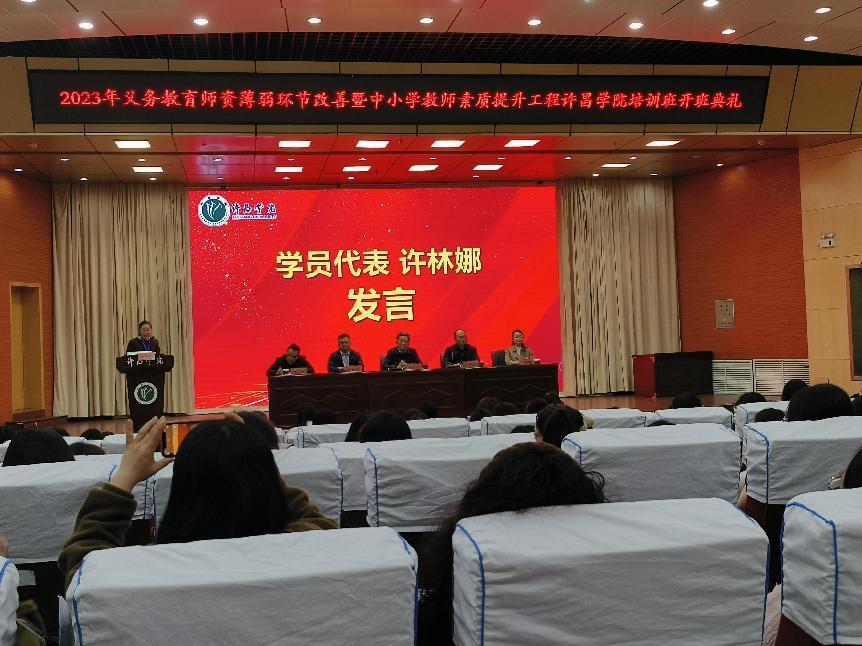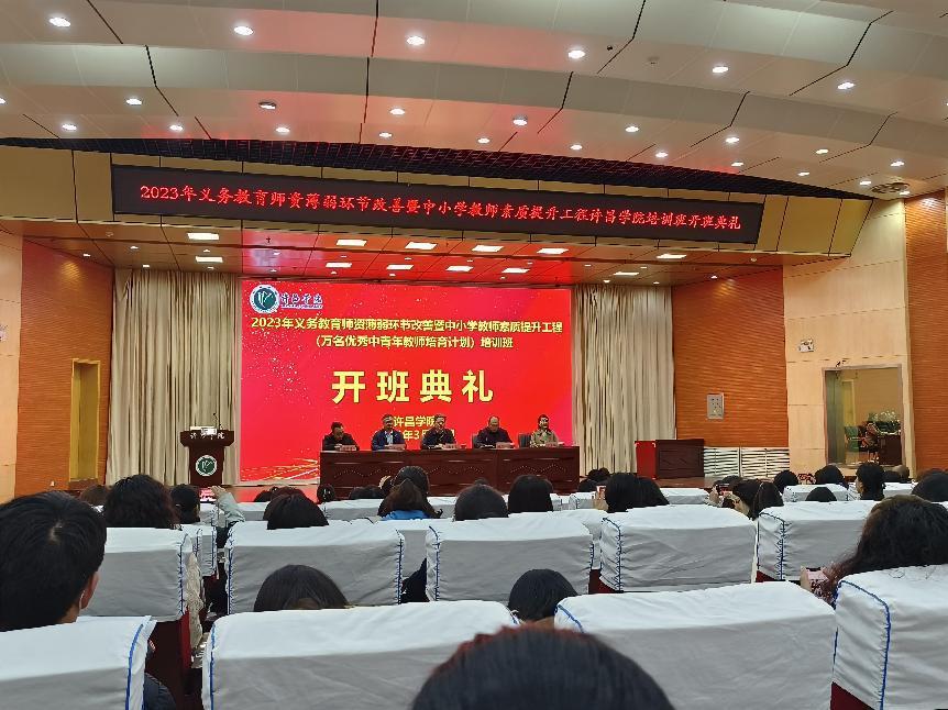2024年3月19日上午,2023年义务教育师资薄弱环节改善暨中小学教师素质提升工程(万名优秀中青年教师培育计划)培训班在许昌学院学术报告厅举行了隆重的开班典礼。