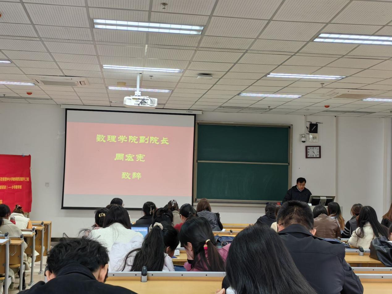首先,许昌学院数理学院副院长周宏宪致辞。他对参训学员的成果和努力予以肯定,希望返校后,紧跟新课标改革的步伐,全面提升小学数学课堂教学水平。发挥示范带动作用,并辐射带动校本教研和本校教师专业发展。