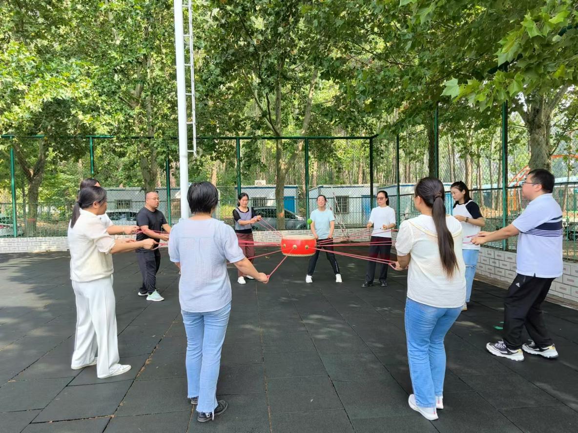 随后的拓展项目中,各小组展开了激烈的角逐。在“同心击鼓”比赛中,队员们不怕挫折、不断进取,紧密配合,展现出了高效的团队协作能力。