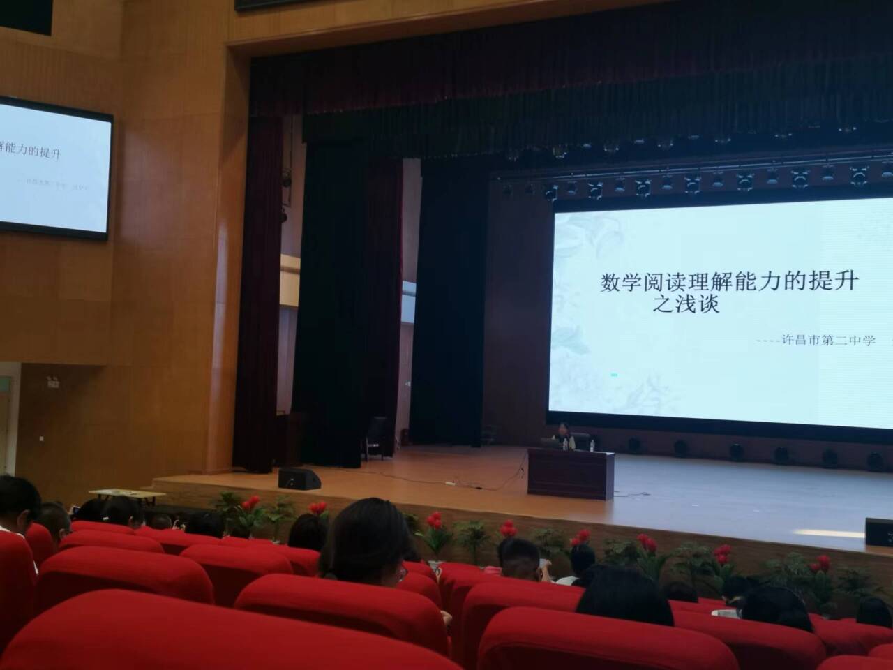 最后,许昌市第二中学的连艳君老师《数学阅读理解能力的提升之浅谈》为题展开分享,对于阅读理解的数学题进行了分析,还是要提高学生的阅读能力。连老师还提出了教学建议:设置每日一练,习题设置低起点、高立意、从简单到复杂,逐步增加问题的难度,重视对运算能力的考查,淡化特殊技巧,避免无效的重复练习。分层布置,让每一个学生都能学有所获,能够解决问题,保持和激发学生学习数学的兴趣和信心,实现“跳一跳,够到桃”。
