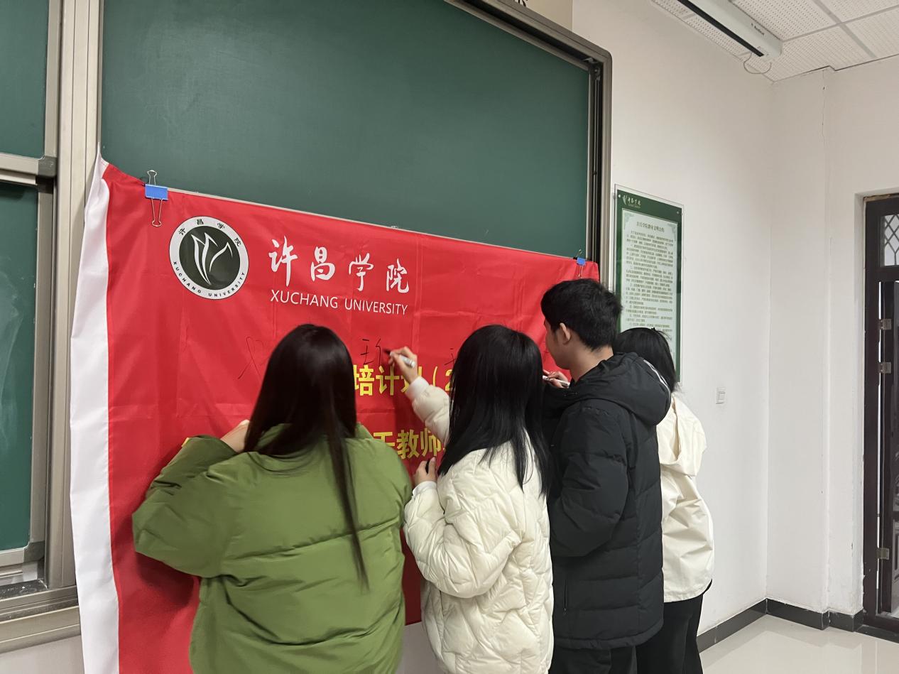 随后在班主任岳老师的组织下,进行了班旗签字仪式。大家纷纷在班旗上留下自己的名字,为自己在许昌学院的集中培训画上圆满的句号。