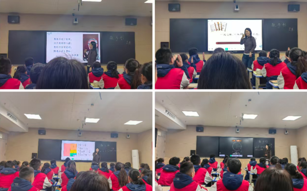 首先由许昌市南关村小学贾亦媛副校长以及南街学校的孩子们一起带来的六年级《数与形》。贾老师的课堂生动有趣,引领学生由繁到简的学习系统知识。她的课件精美简洁,最后利用小视频制作悬念,促使学生动脑思考、探索的同时激发学生学习兴趣,充分调动学生积极性和求知欲。老师们听得津津有味,认真记笔记,课下还积极主动与老师交流。