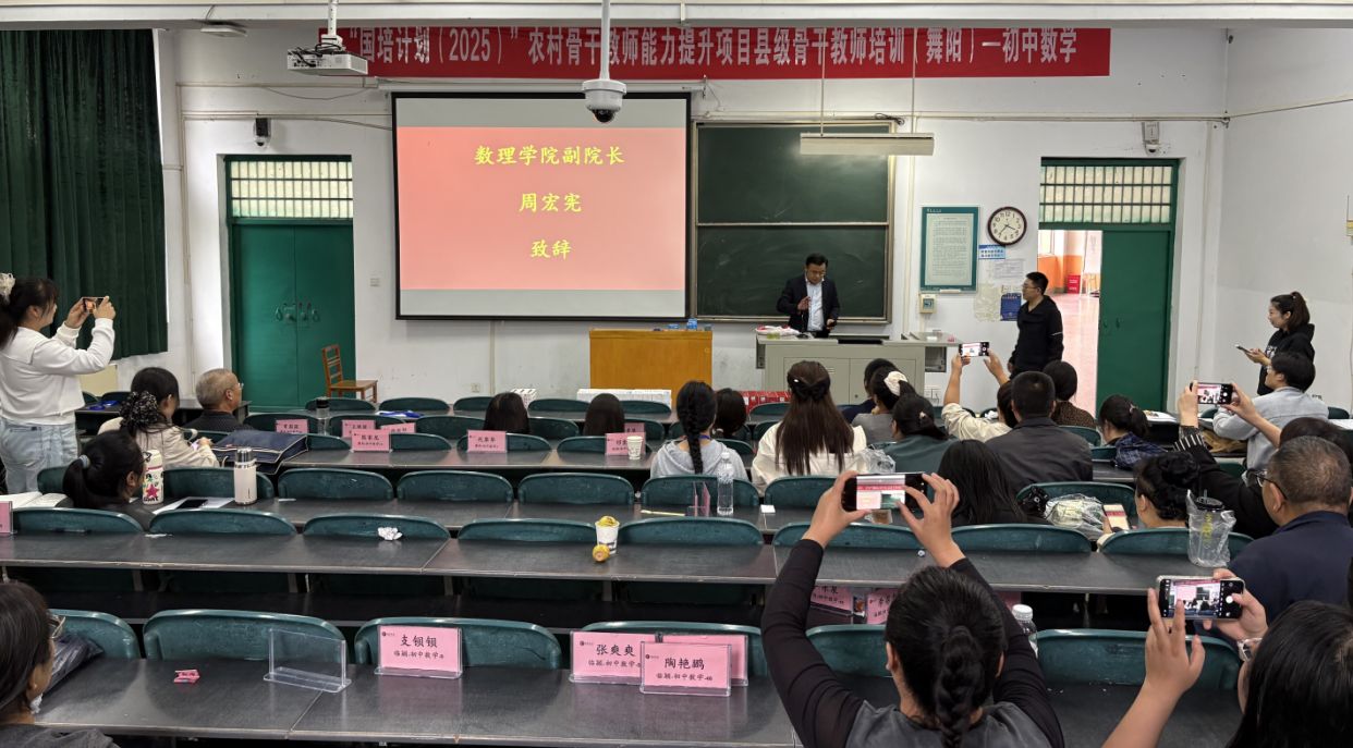 2025年9月28日下午,“国培计划(2025)”农村骨干教师能力提升项目——县级骨干教师培训初中数学班(舞阳)全体学员在许昌学院A合十五教室隆重举行了结业典礼。典礼由班主任张亚东老师主持。参加此次结业典礼有数理学院副院长周宏宪,以及舞阳县初中的参训学员。