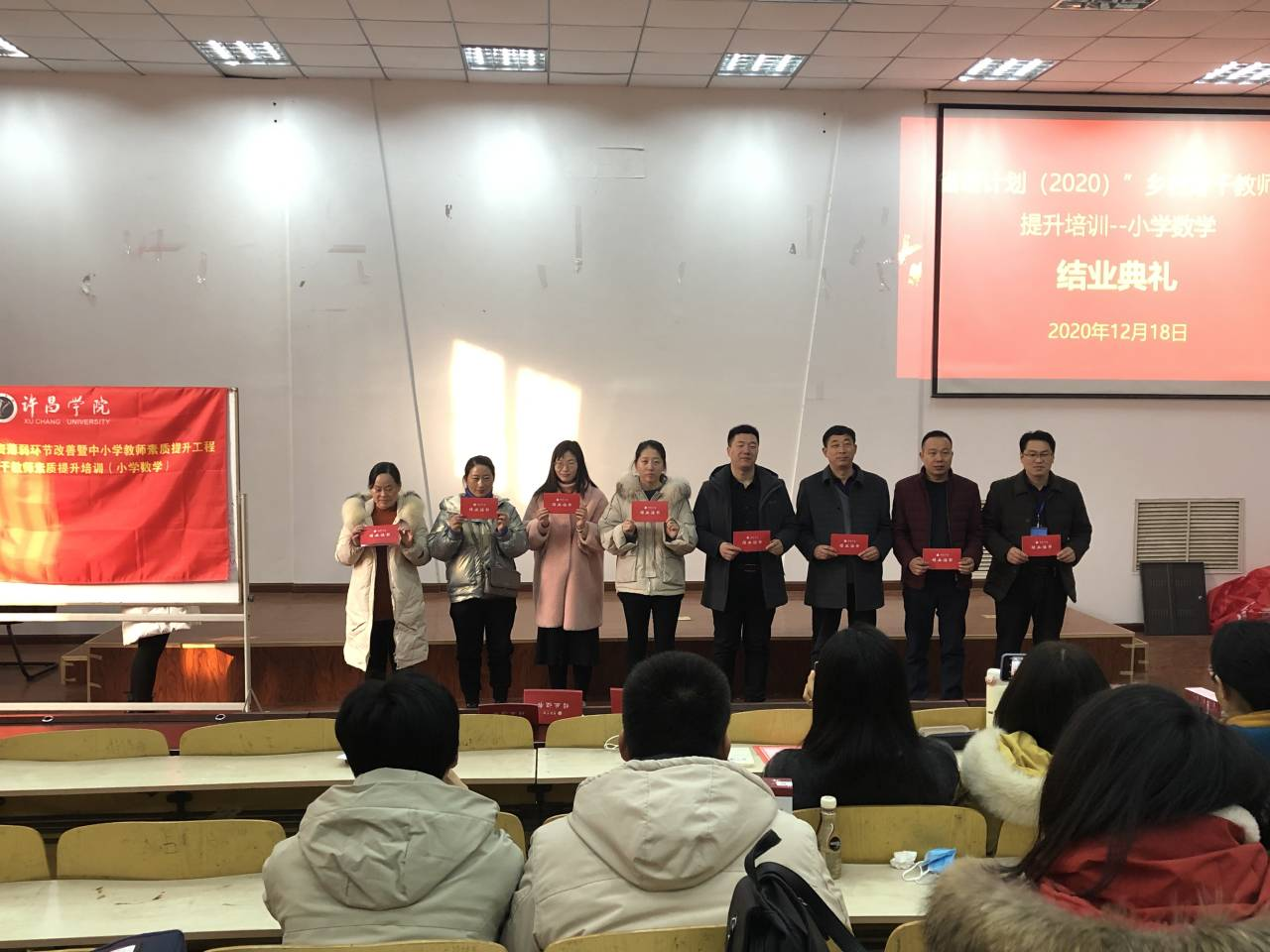 2020年12月18日上午,在A合七教室,许昌学院数理学院举办了许昌学院2020年义务教育师资薄弱环节改善暨中小学教师素质提升工程——乡村骨干教师素质提升培训(小学数学)的结业典礼,各个小组的学习导师和全体学员参加了结业典礼。结业典礼由班主任史艳华老师主持进行。