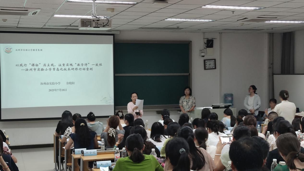 2025年7月18日上午,2025年义务教育师资薄弱环节改善暨中小学教师素质提升工程(万名优秀中青年教师培育计划项目)—小学数学培训班全体学员,在许昌学院E楼109教室参加了一场主题为《以践行课标为主线,注重实现“教学评”一致性》的活动——汝州市实验小学基于常态化的校本研修行动案例。