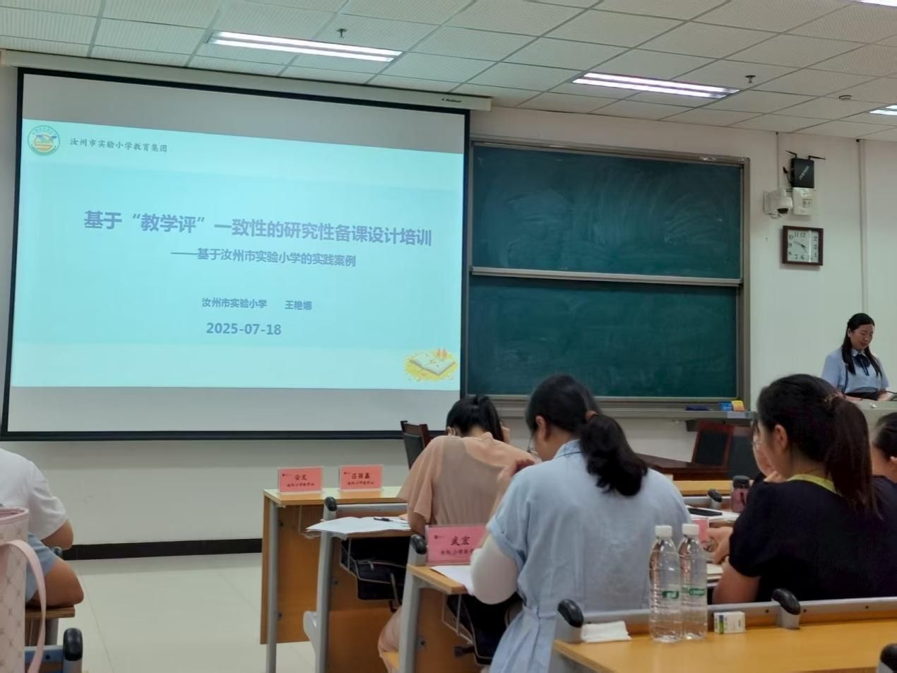 2025年7月18日下午,2025年义务教育师资薄弱环节改善暨中小学教师素质提升工程(万名优秀中青年教师培育计划项目)—小学数学培训班全体学员,在许昌学院E楼209教室参加了一场由汝州市实验小学带来的集备展示与点评:苏教版数学五下《圆的认识》,还聆听了王艳娜老师的《基于“教学评”一致性的研究性备课设计培训》分享。