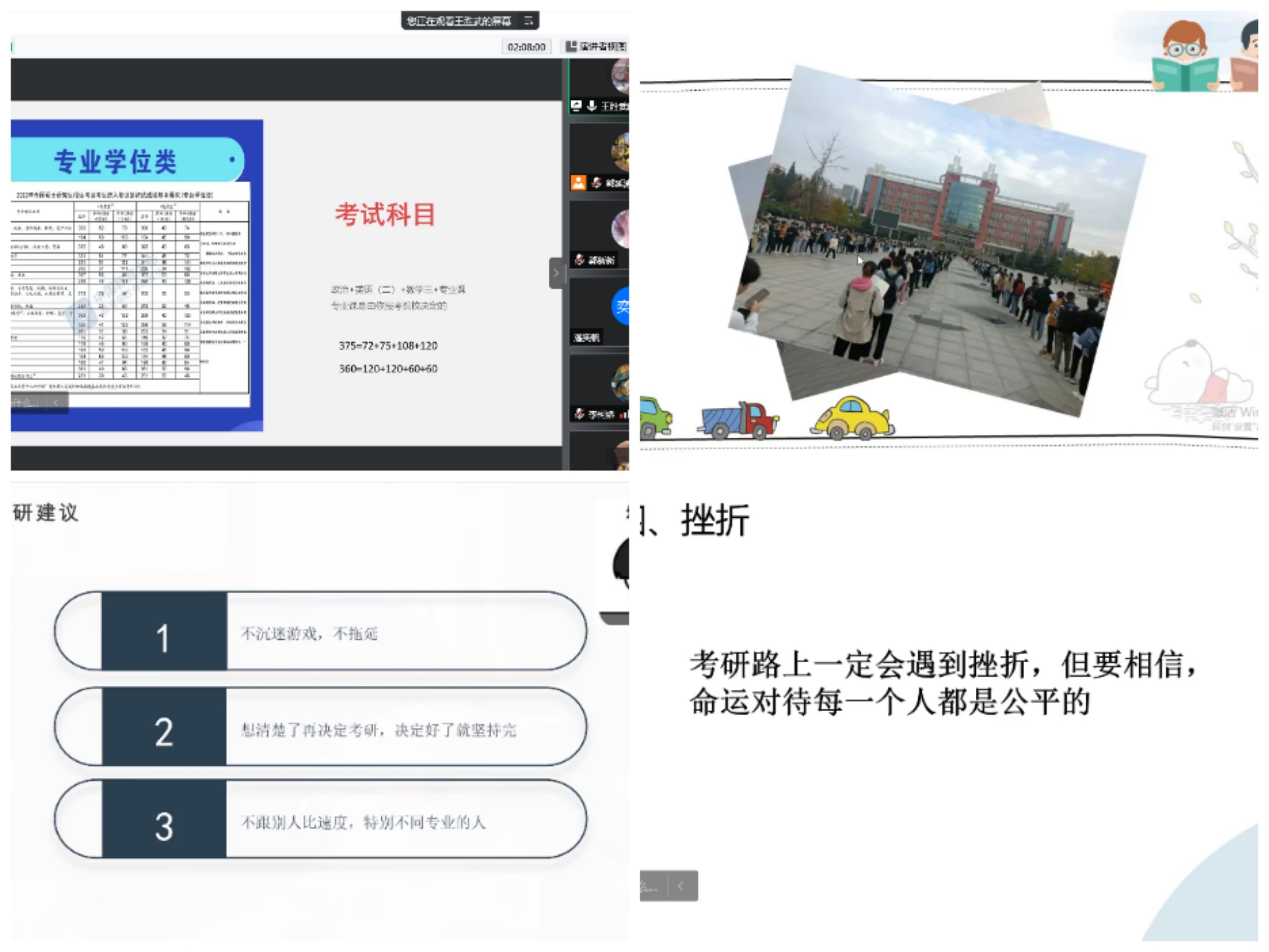 为使同学们更好的了解考研信息,把握未来考研的趋势,掌握相关考研技巧,2022年5月15日上午9时,我院举办了线上考研经验交流会。本次考研经验交流会由院团委学生会举办,郭延涛副院长及考取硕士研究生的2022届优秀毕业生应邀参加了此次交流会。