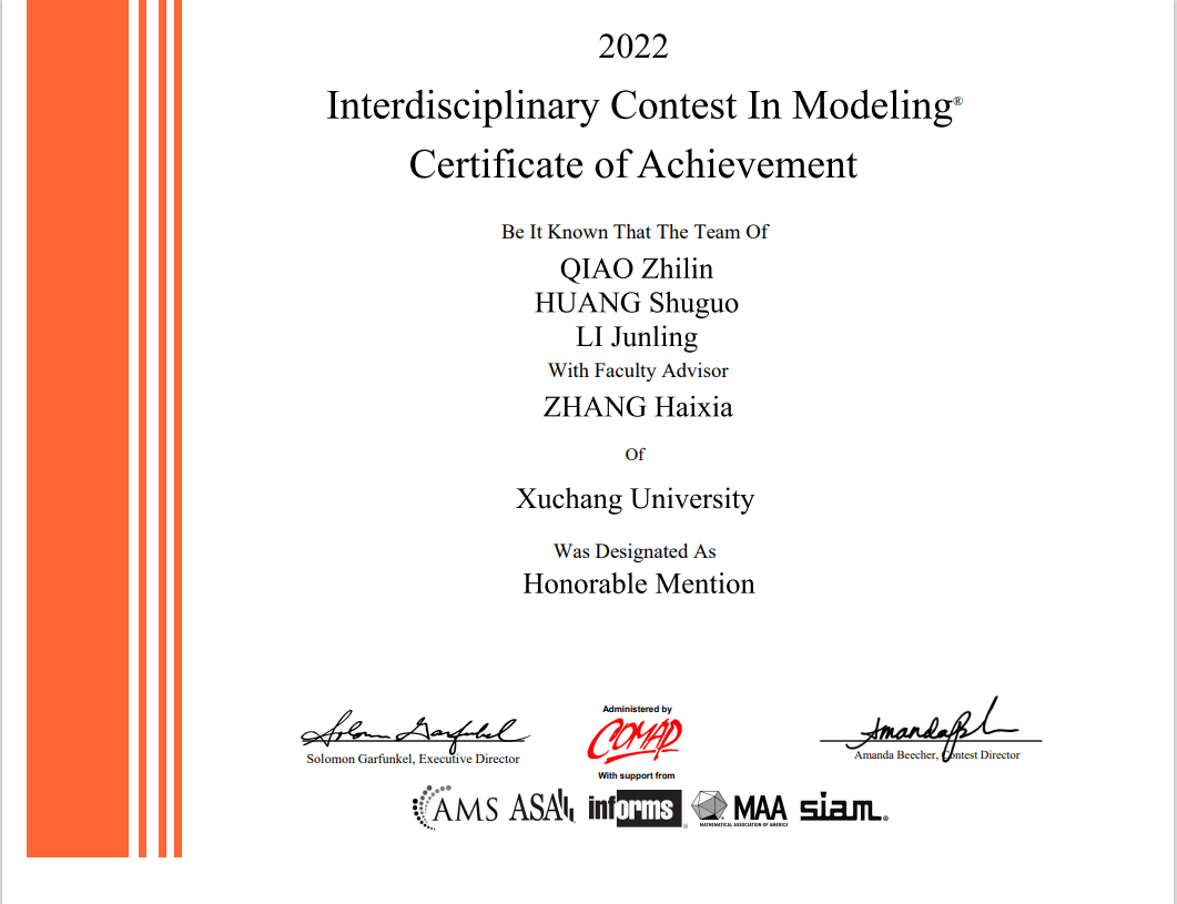 我校在2022年美国国际大学生数学建模竞赛中喜获佳绩
