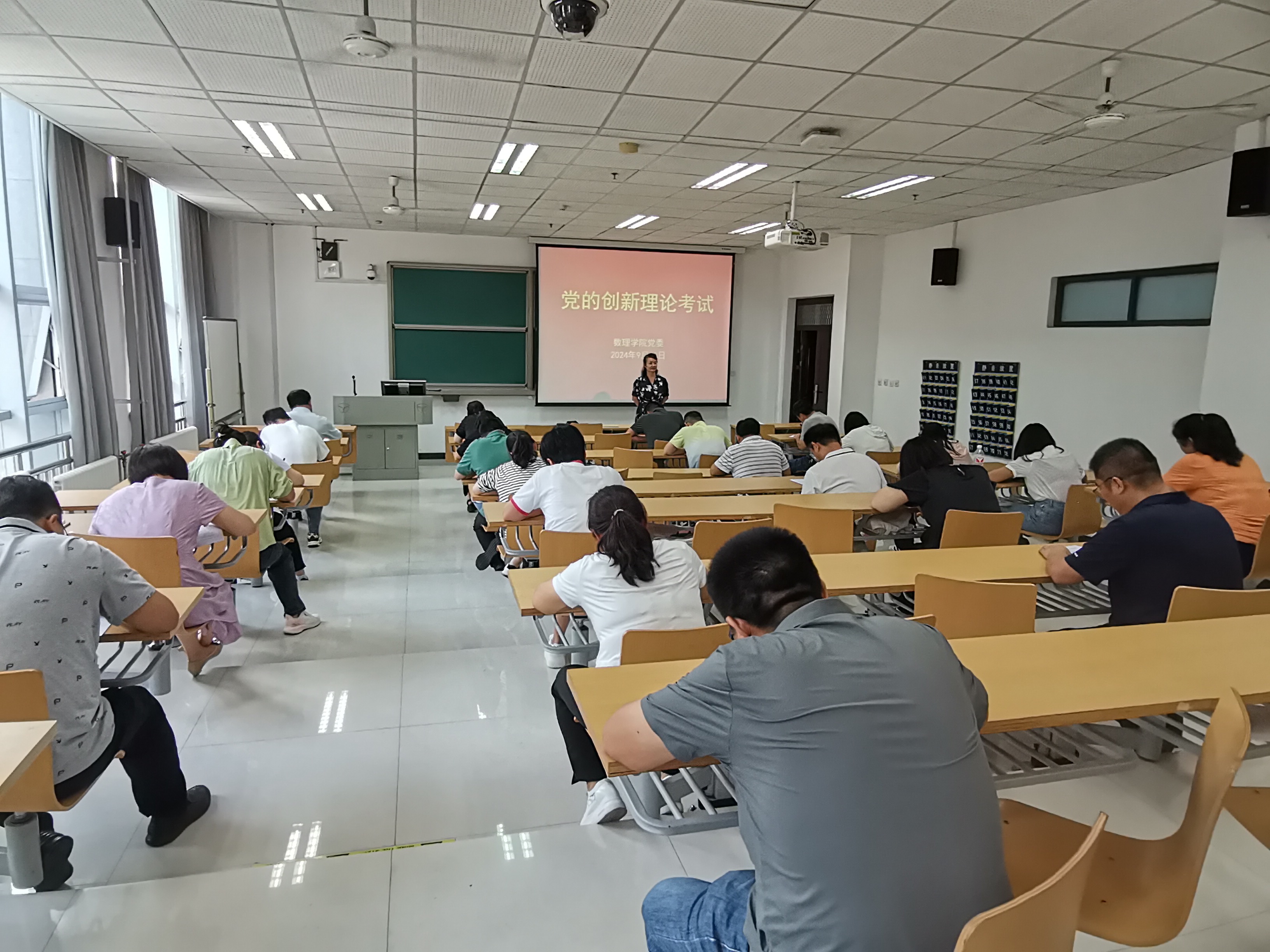 为深入学习贯彻习近平新时代中国特色社会主义思想和党的二十大、二十届三中全会精神,以竞赛促学习、以学习促实干,9月20日下午,数理学院在E-206教室举办了“强化理论学习,持续推动主题教育”为主题的第二届党的创新理论知识竞赛。数理学院党委书记苗宝军、院长牛裕琪,学院全体教师党员参加竞赛。