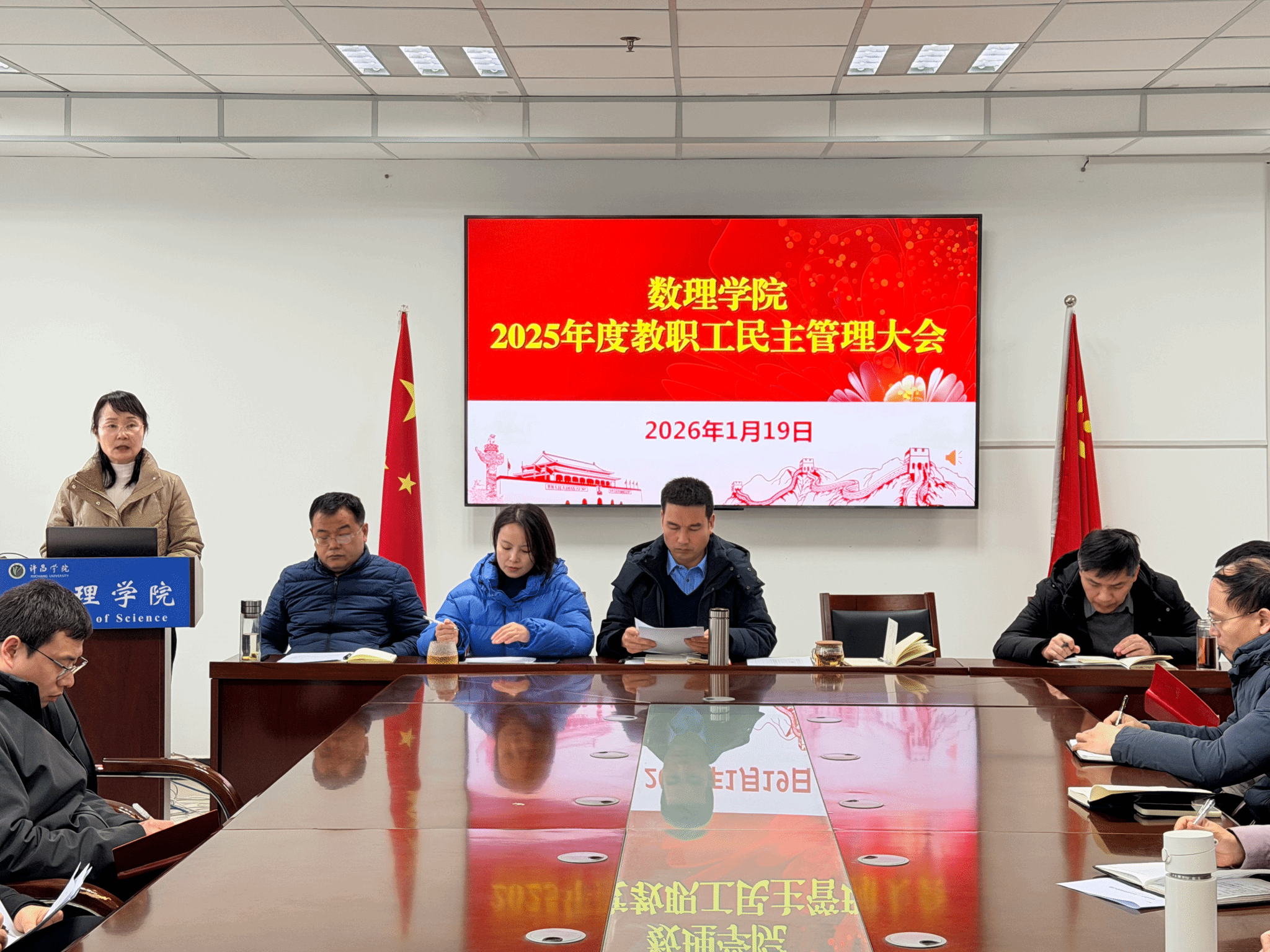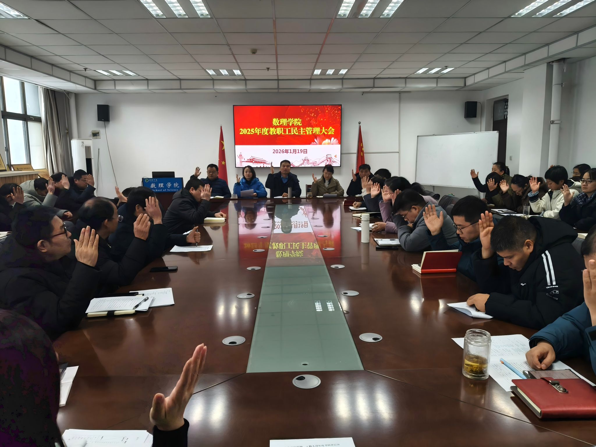 2026年1月19日下午,数理学院在E-2029会议室召开2025年度教职工民主管理大会,全体教职工参加会议,会议由学院党委副书记孔琪主持。