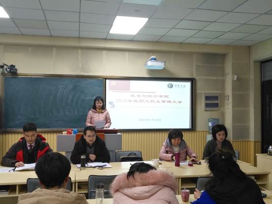 2019年1月18日下午,数学与统计学院在B2-410教室召开了2018年度教职工民主管理大会,数学与统计学院全体教职工参加了会议,会议由院党总支副书记苗宝军主持。