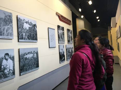 午餐过后,大家一起参观了毛泽东主席视察纪念馆,该馆始建于1968年,l993年重修扩建,2008年进行了改造整修。纪念馆现占地2000平方米,展厅220平方米,属县级文物保护单位、许昌市青少年爱国主义教育基地。展厅以毛泽东主席及党和国家其他领导人的视察情景为中心,展现了襄城烟草生产源远流长的历史和对全国烟草生产的贡献。后院由百块古今名人书画石刻组成的环形碑廊,与展厅、古亭、两厢配房相互辉映,呈现出清幽、典雅、肃穆的氛围。