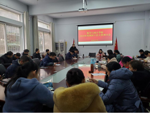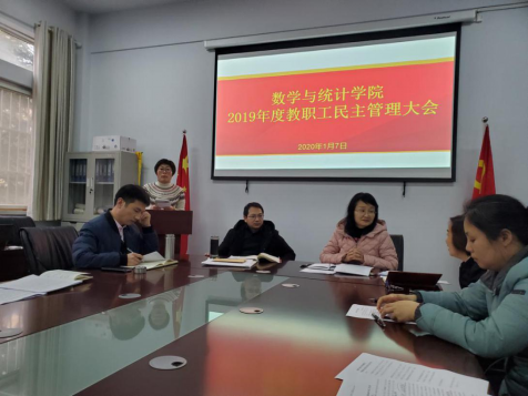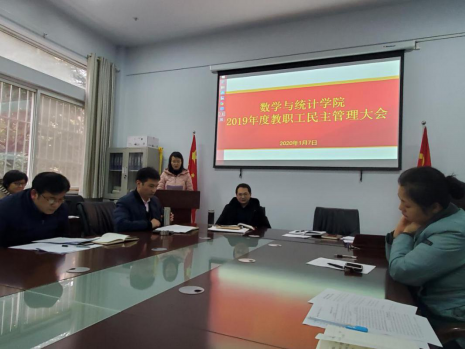2020年1月7日,数学与统计学院在会议室召开2019年度教职工民主管理大会。我院全体教职工参加了会议,会议由党总支副书记苗宝军主持。