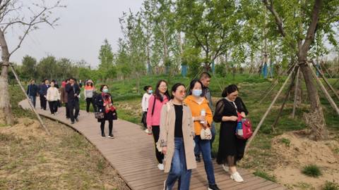 4月18日上午,大家到了双洎河国家湿地公园集合后,活动正式开始。参加本次健步走的教职工精神抖擞,兴致高昂,沿着步行道阔步向前,一边呼吸着新鲜的空气,一边进行着生活和工作方面的交流,并不时发出开心的笑声,感受着集体活动带来的愉悦。既锻炼了身体,又舒展了心情,还增进了大家彼此之间的交流。大家三五成群,在欢声笑语中,充分感受越运动越健康的健康生活理念。