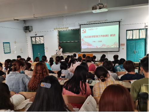 2021年4月16日下午,数理学院学生第一党支部书记王艳菲老师在B合十五以“《中国共产党党员教育管理工作条例》解读”为题,为第27期党校的入党积极分子们上党课。